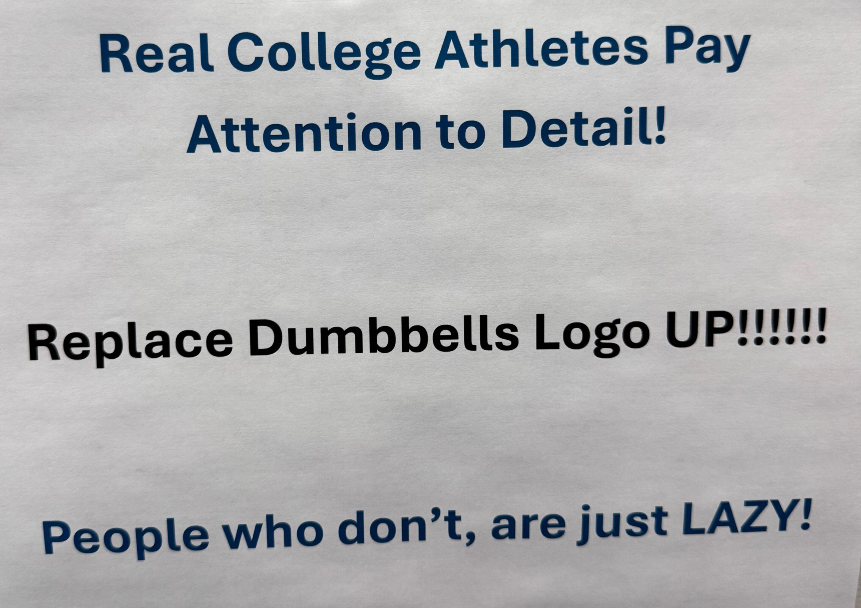 The other day I was in a gym at a university where I was consulting. It was a beautiful facility — brand-new equipment, clean floors, the kind of space that makes you want to train hard and take pride in where you are. Mid-workout, a sign on the wall caught my attention.